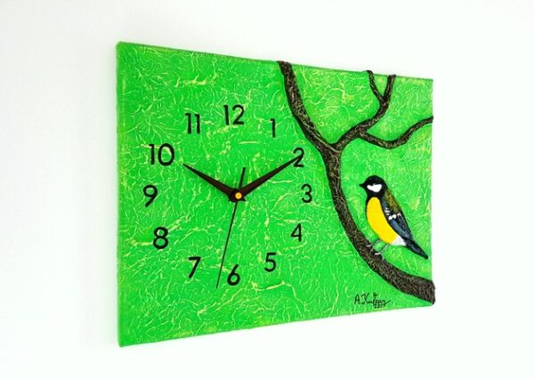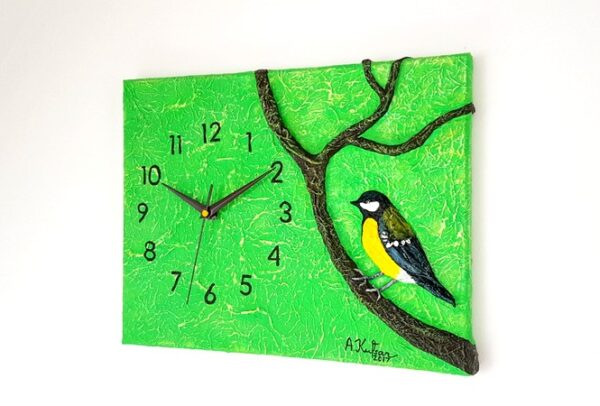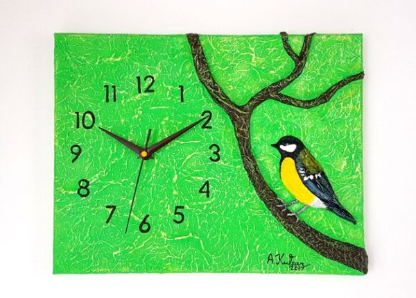 Käsitööna valminud 3D seinakell alusraamiga lõuendil.
