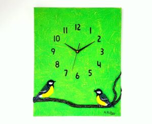 Käsitööna valminud 3D seinakell alusraamiga lõuendil.
